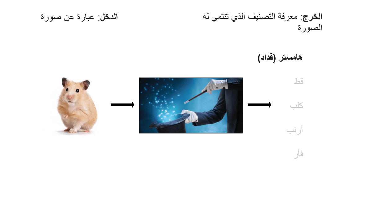 عندما تأتي صورة جديدة باللون الأصفر فعلينا أن نحدد فيما إذا كانت هي صورة لقط أم صورة لهامستر.