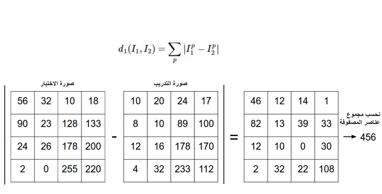 مرحلة الاختبار حساب المسافة عن كل صورة من مجموعة التدريب.