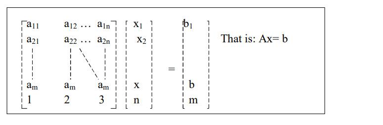 يمكن وصف الشكل العام لجملة المعادلات الخطية باستخدام المصفوفات عبر الشكل الآتي: