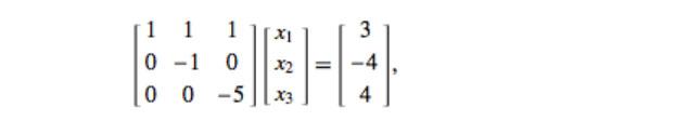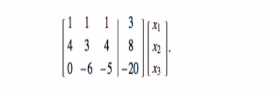 وإليكم مثالًا يوضّح هذه الطريقة بشكلٍ مفصلٍ. فلتكن لدينا جملة المعادلات الخطية المعبر عنها بالشكل المصفوفي الآتي: