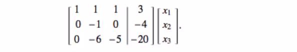 وأخيرًا، نضرب الصف الثاني ب-6 ونطرح الصف الثاني من الثالث فيكون الناتج: