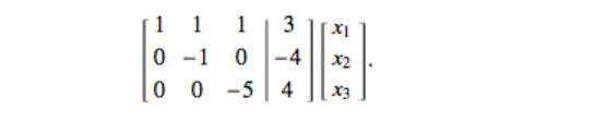 نضرب الصف الأول بـ 4 ومن ثم نطرح الصف الأول والثاني فنحصل بالنتيجة على الصورة التالية: