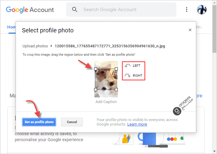 وفي النهاية اضغط على الزر تحديد كصورةٍ شخصيةٍ Set as profile photo.