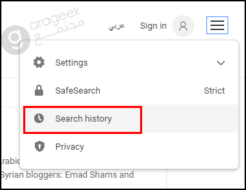 هنا ستجد تبويب محو سجل البحث Clear your search history