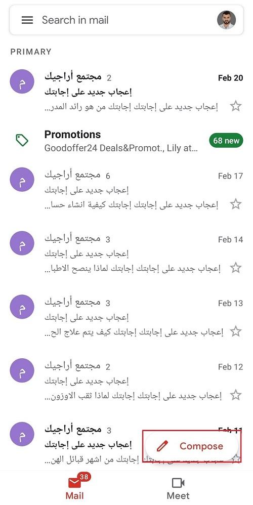 اضغط على إنشاء رسالة في الشريط الأيمن من الشاشة.