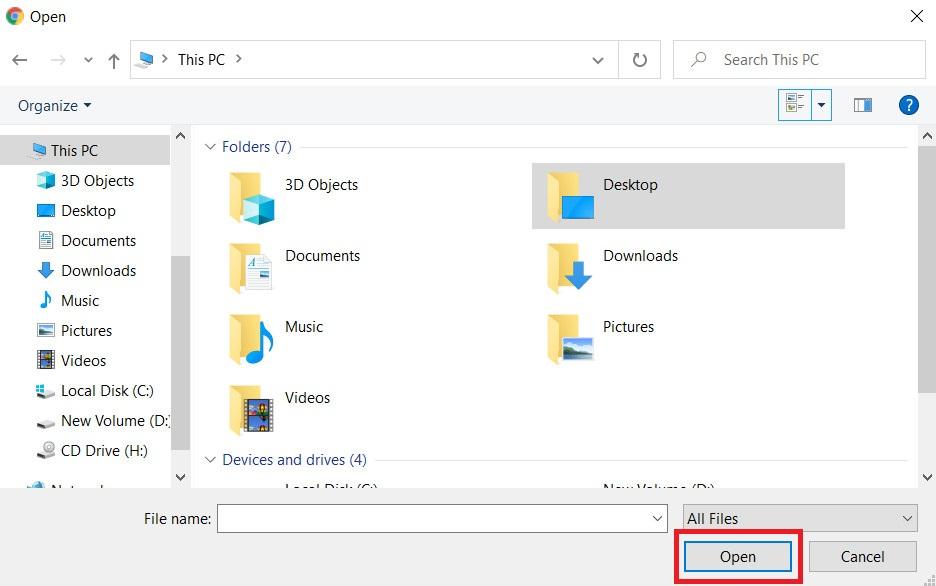 1. حدد الملف الذي تريد إرفاقه واضغط على فتح.[footnote] How to Send a File Attachment with Windows Live Hotmail، من موقع: www.lifewire.com، اطّلع عليه بتاريخ February/24/2021 | 08:51 PM[/footnote]