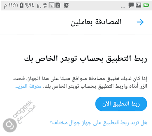 *. أما إذا كنت تستخدم تطبيق تويتر على الهاتف فسيفتح تطبيق المصادقة ويظهر رمز أو رقم التحقق. احفظه أو انسخه ثم عد إلى تطبيق تويتر.