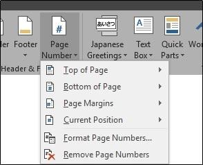 • ستظهر قائمة منسدلة تحوي مجموعة مختلفة من الخيارات من أجل ترقيم الصفحات في الوورد كالمكان الذي تريد للأرقام أن تظهر فيه. الخياران الأخيران يسمحان لك باختيار بنية عرض الأرقام بشكل أدق وبأن تحذف الأرقام بشكلٍ كامل من المستند.