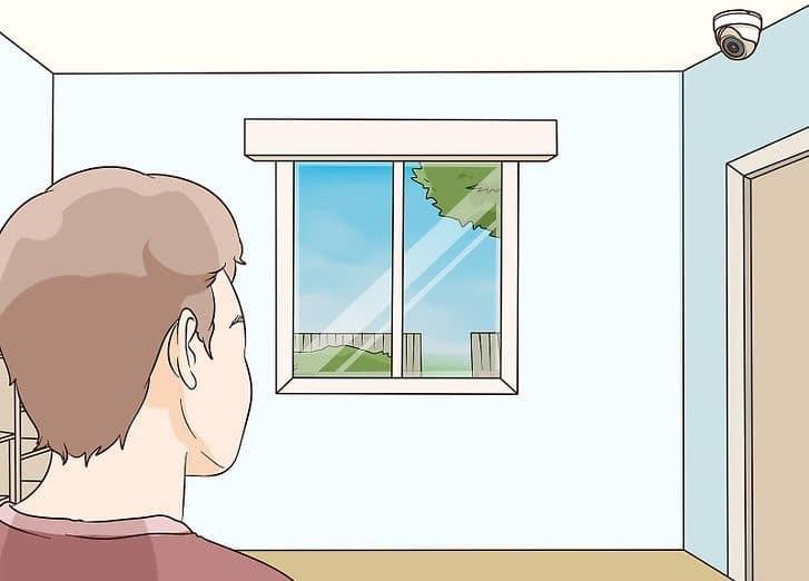 أفضل زاوية لمراقبة الغرفة هي حيث يلتقي السقف مع الجدار، لذلك تأكد من توجيها بحيث تظهر كافة أنحاء الغرفة ومن قربها من مصدر الطاقة.