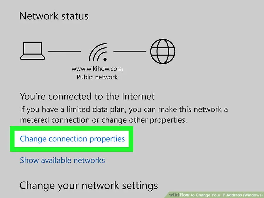 اضغط على تغيير خصائص الاتصال Change Connection Properties.