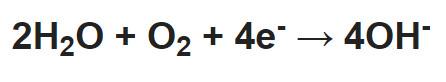 تتحد الإلكترونات مع الماء والأوكسجين في الخرسانة ويُطلق عليه تفاعل الاختزال الذي يحدث عند الكاثود: