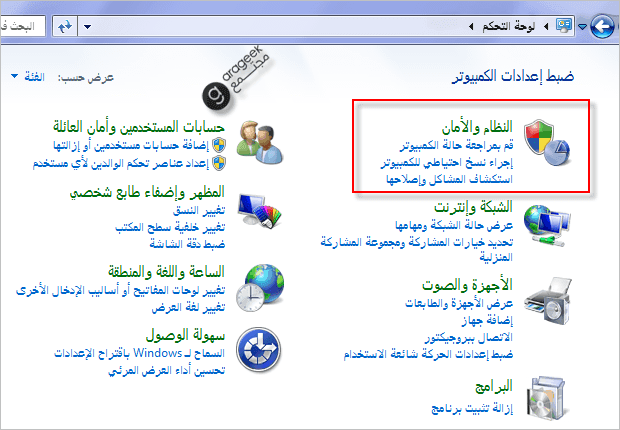 اذهب إلى لوحة التحكّم واضغط على النظام والأمن (System and Security).