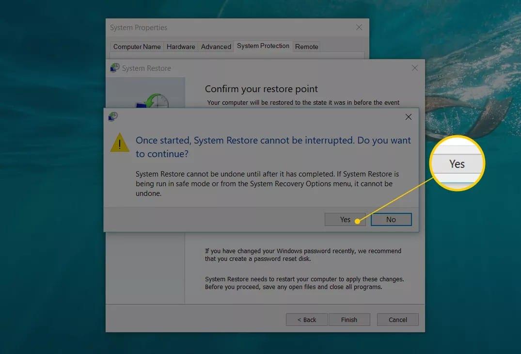- انقر فوق "نعم". بمجرد البدء، لا يمكن مقاطعة "استعادة النظام". وإن كنت تريد الاستمرار اختر "نعم".
