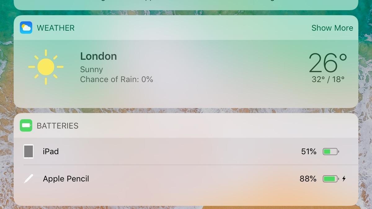 قم بالتمرير إلى أسفل شاشة العرض اليومية واضغط على تحرير، ستظهر لك بعد ذلك قائمة من الأدوات. قم بالتمرير نحو الأسفل إلى أداة البطاريات وانقر على اللون الأخضر ثم على Done، بعدها سيظهر قلم آبل في قائمة الأجهزة بحسب مستوى بطاريته الحالية.
