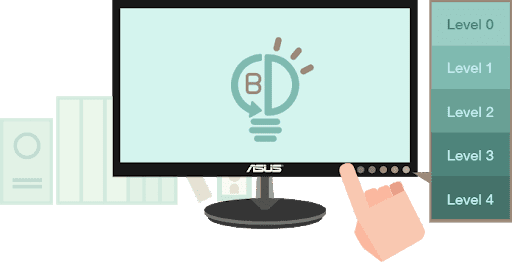 عمل الباحثون ضمن شركة Asus من أجل تحديد كميّة انبعاث الضوء الأزرق بحيث تناسب جميع الأعمال والاستخدامات، حيث تتضمّن شاشات Asus الحديثة التي تستخدم تقنيّة Low Blue Light قائمة خاصّة تتيح لك أربع مستويات مختلفة لتحديد مقدار فلترة الضوء الأزرق بالشكل الذي يناسب استخداماتك: