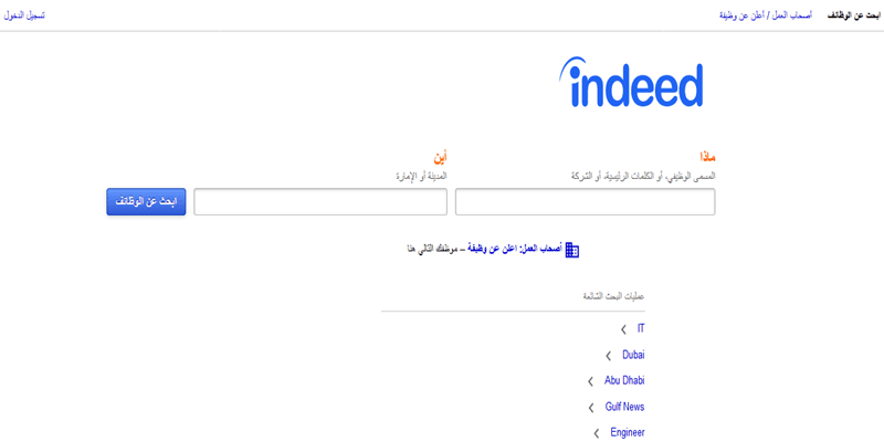 Indeed.com هو محرك بحث قوي جدًا، يمنح القدرة على تجميع السيرة الذاتية وتقديمها في الموقع للبحث عن صاحب العمل من الكلمات الرئيسية، وظائف، منافذ، وأكثر من ذلك، ويكشف في الواقع عن مجموعة واسعة من الوظائف والحقول التي لا تجدها عادة في معظم مواقع البحث عن الوظائف.