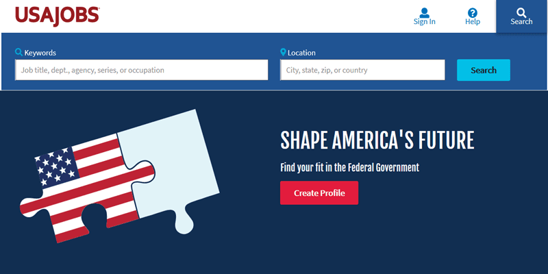 فكّر في USAjobs كبوابة لك في عالم ضخم من الوظائف الحكومية الأمريكية. انتقل إلى الصفحة الرئيسية لموقع USAjobs.gov، وستتمكن من تضييق نطاق البحث عن طريق الكلمة الرئيسية أو المسمى الوظيفي أو رقم التحكم أو مهارات الوكالة أو الموقع. إحدى الميزات المثيرة للاهتمام هي القدرة على البحث في جميع أنحاء العالم في أي بلد يعلن عن وظيفة شاغرة حاليًا.