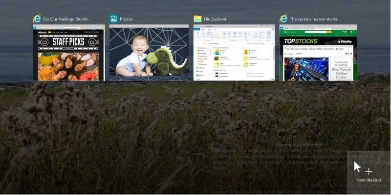 يتيح لك ويندوز 10 سطح مكتب افتراضي لترتيب مساحات منفصلة للبرامج للعمل عليها، انقر على عرض المهام Task View على يمين مربع البحث على شريط المهام، سيتم عرض جميع النوافذ المفتوحة، ثم انقر فوق سطح المكتب الافتراضي virtual desktop أسفل سطح المكتب الجديد لإنشاء مساحة جديدة.